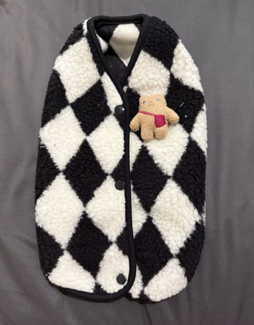 「犬用チェック柄フリースつなぎ服|小型犬・子犬・猫用あったかペットウェア|Petopop」