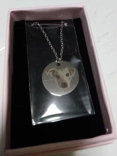 お気に入りのペット写真をそのままネックレスに。丸型ペンダントに写真を刻印した、世界にひとつだけのオリジナルアクセサリーです。大切な人へのプレゼントや記念日のギフトにおすすめ。