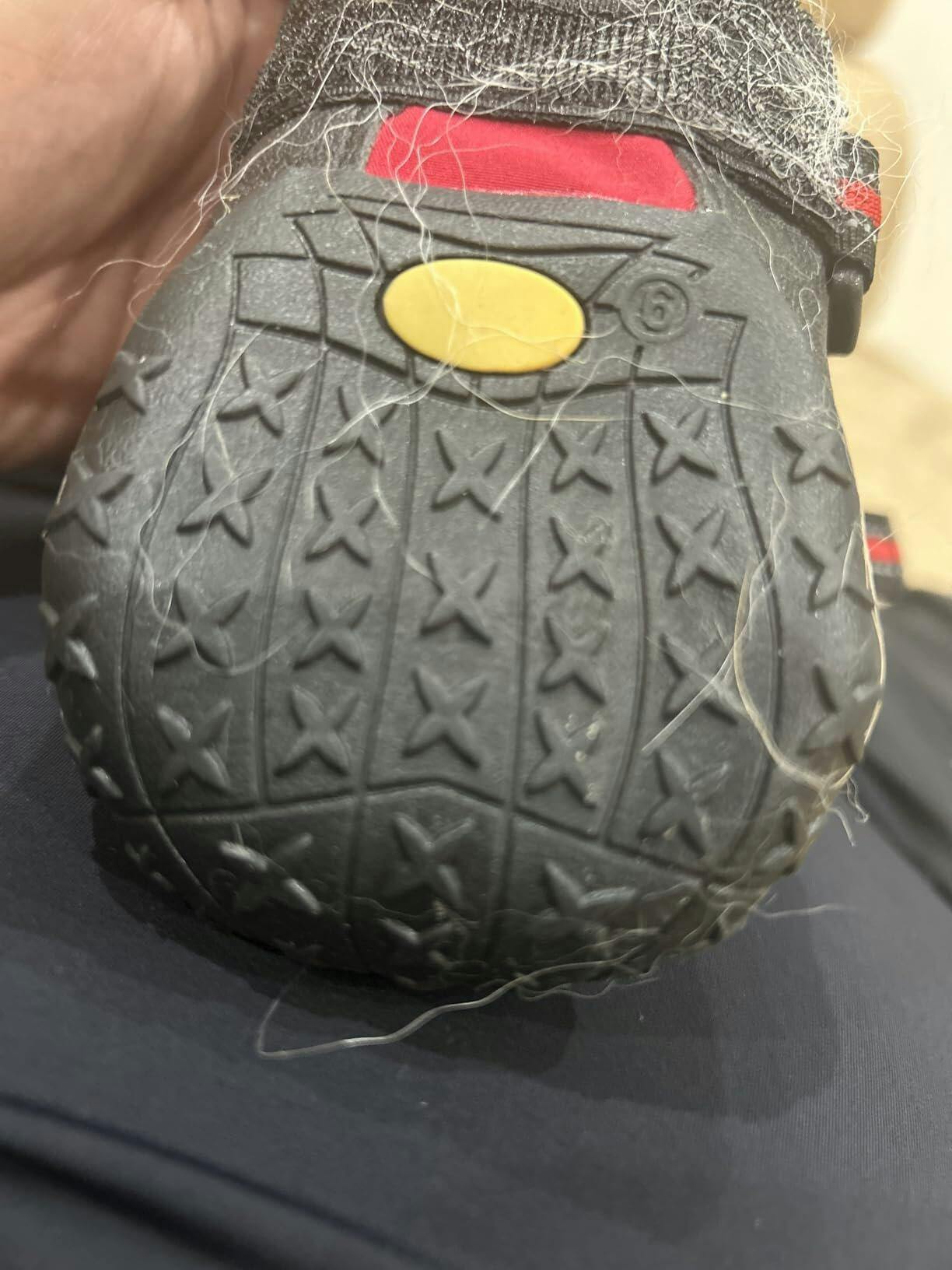 【もう滑らない!安心のグリップ力】 靴底は、まるでタイヤの溝のように設計されており、高いグリップ力を発揮します。フローリングの室内や、濡れたマンホールの上でも滑りにくく、シニア犬の足腰の負担を軽減します。