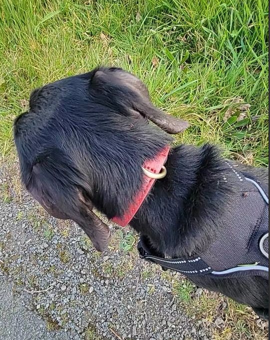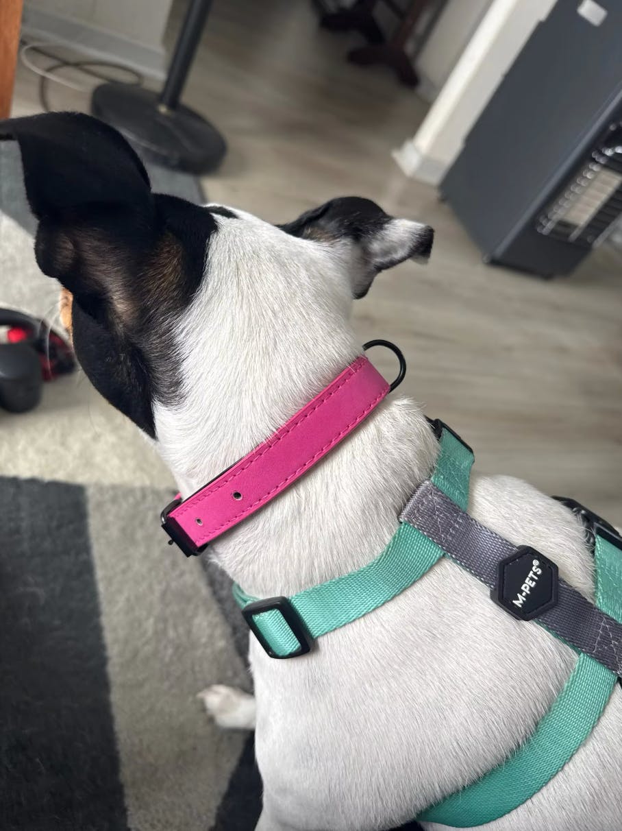 軽くて柔らかめの革で、犬もつけていることを忘れているようです😊