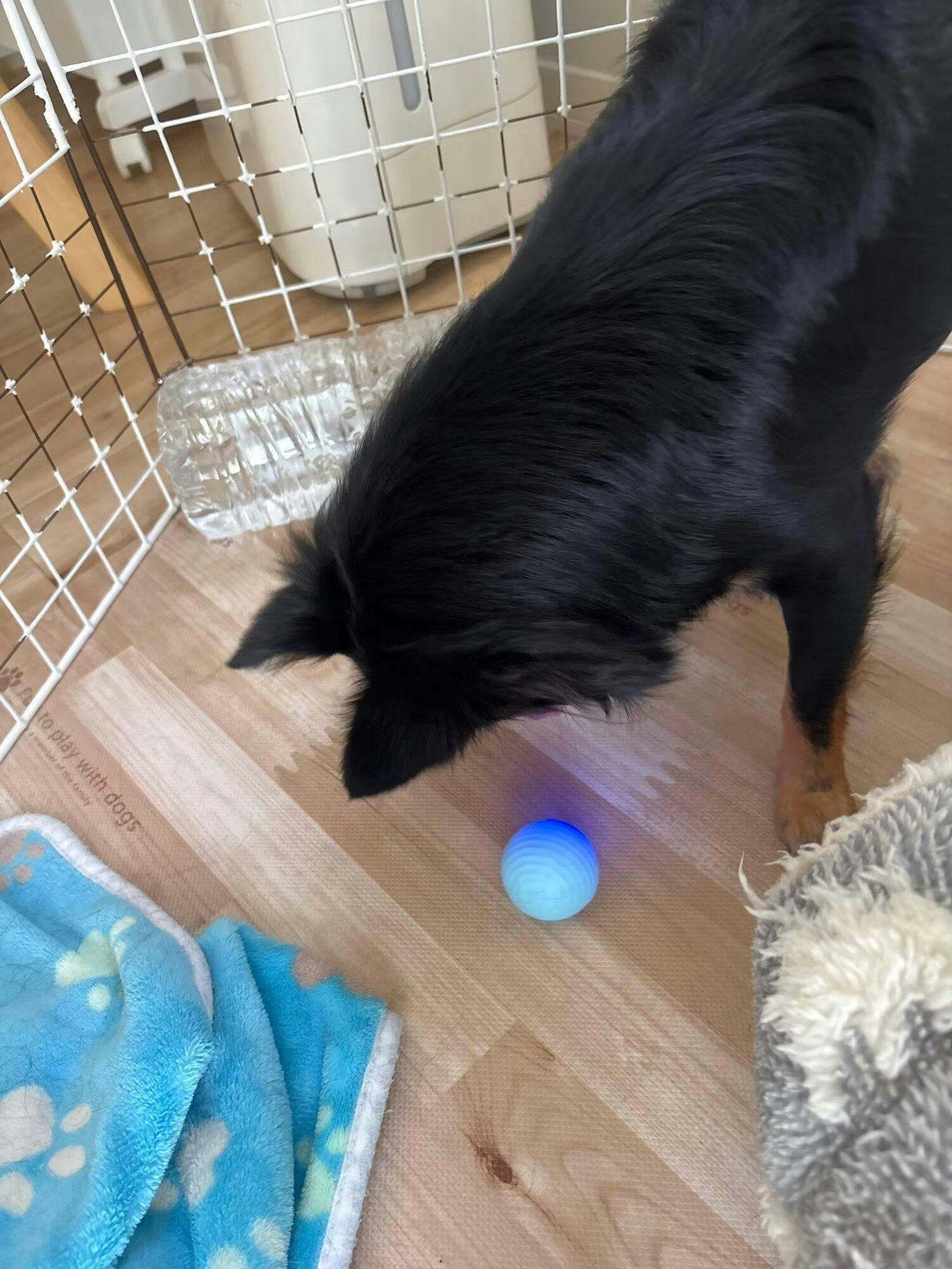 小型犬が夢中で追いかけています!ランダムな動きが面白いようで、運動不足解消にぴったりです。